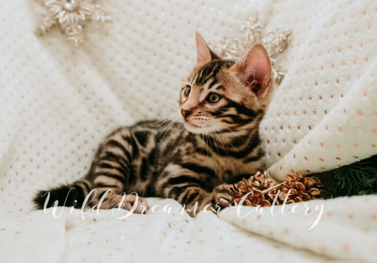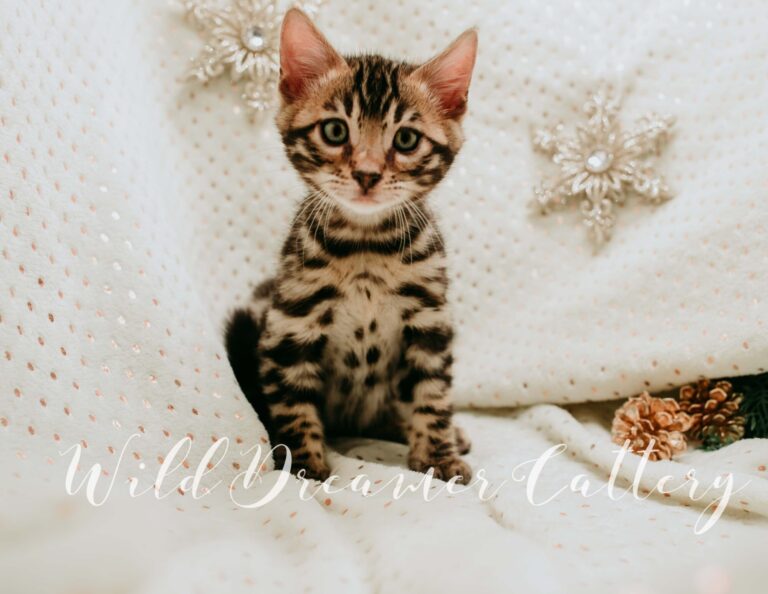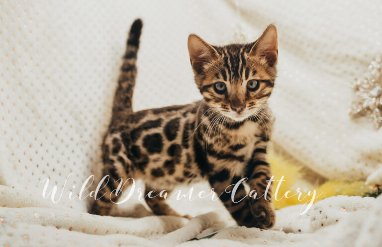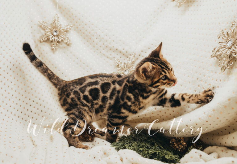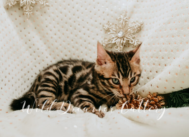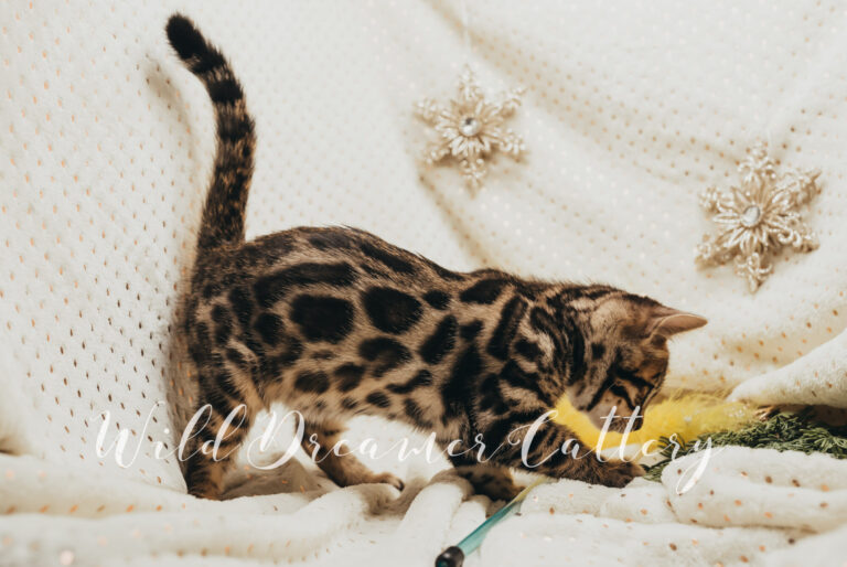 If we had to make a Tender profile for every kitten, we would tell you that a Wild Dreamer Bengal cat and kitten is one that has receive a plethora of love, devotion, attention and socialization! From kids to vacuums, to baths to manicures we do as much as we can to ensure our Bengals have the best affectionate behavior and temperaments. If an exotic leopard is something you have been looking for that is both affectionate and feline as well as breeder quality and will catch everyoneβs eye, Wild Dreamer Cattery would be honored to provide you with a top quality Bengal.